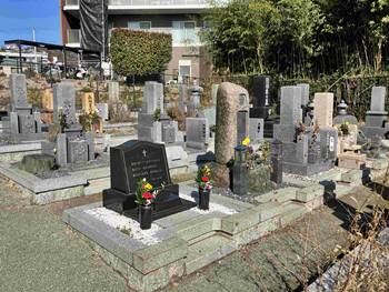 入口には階段がありますが、墓地内はあまり段差も無く比較的平坦な場所にあります。