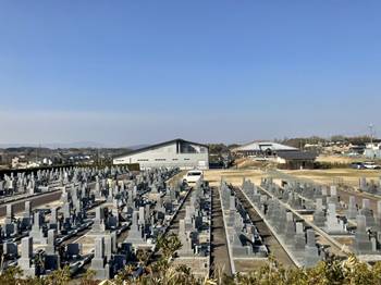 比較的平坦な場所にある明るい雰囲気の霊園です。