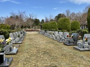 一般的な墓地に比べて、ゆったりした感じで墓石が並んでいて、区画全体も明るい印象を受けます。
